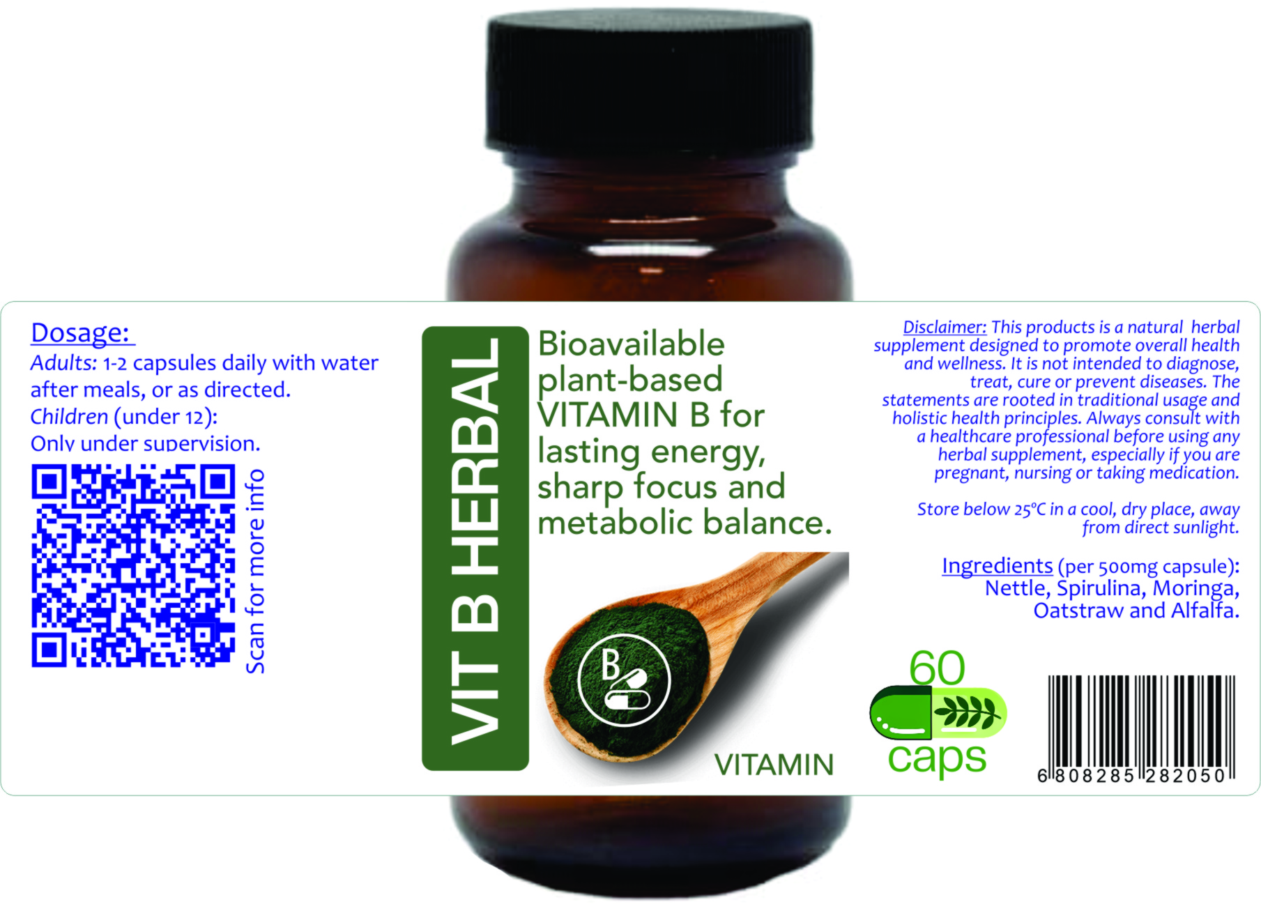 A natural, food-state supplement derived from a synergistic blend of B-rich botanicals. It offers a clean, herbal alternative to refined lab-grade vitamins by providing the full spectrum of B-vitamins as they occur in nature, ensuring optimal assimilation by the nervous and metabolic systems.